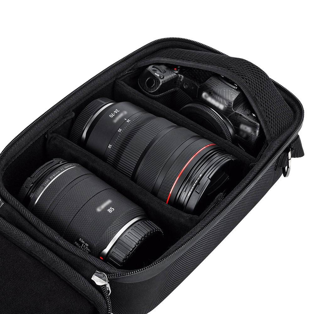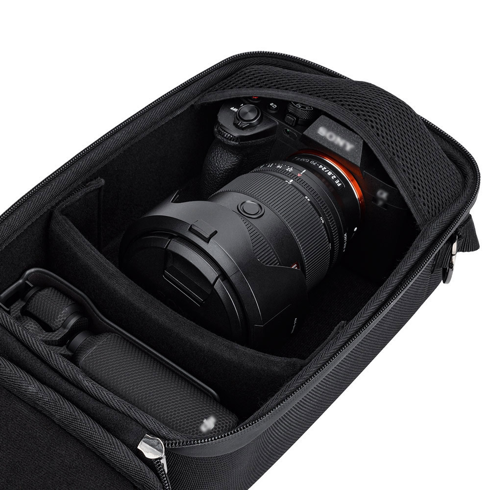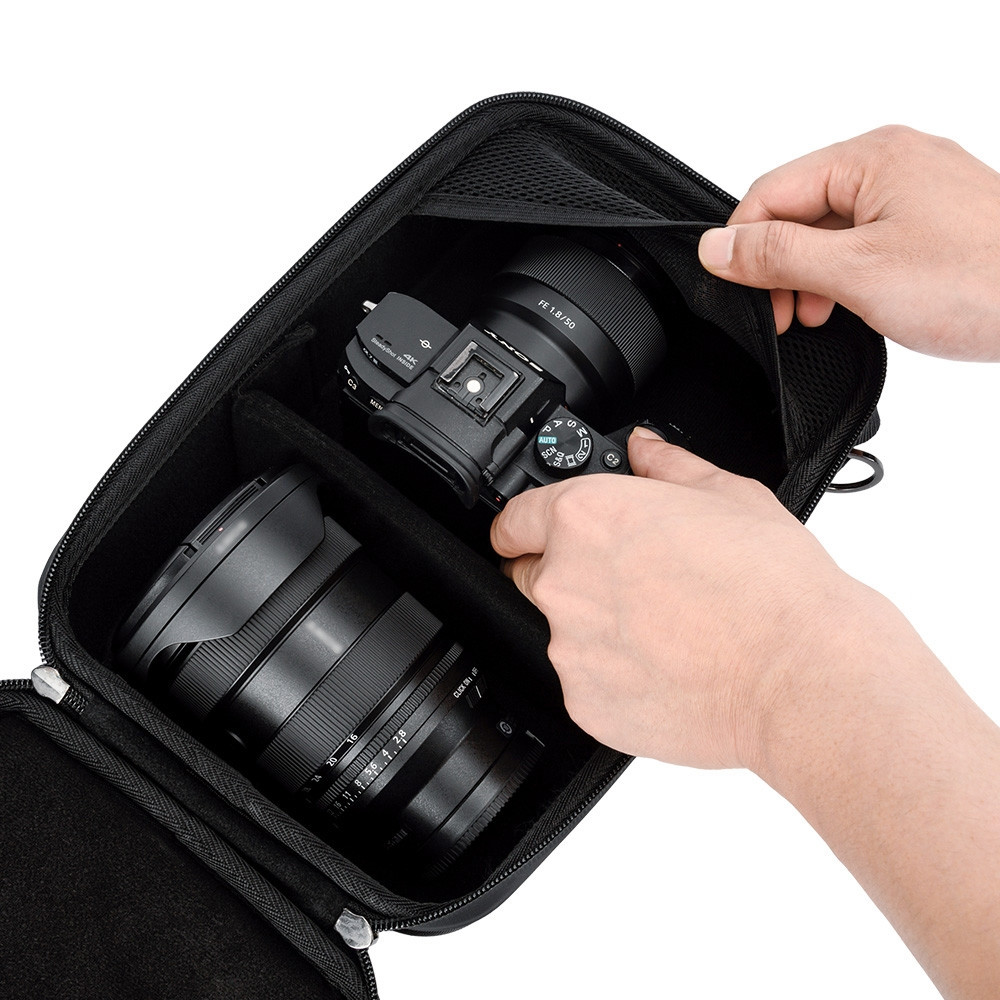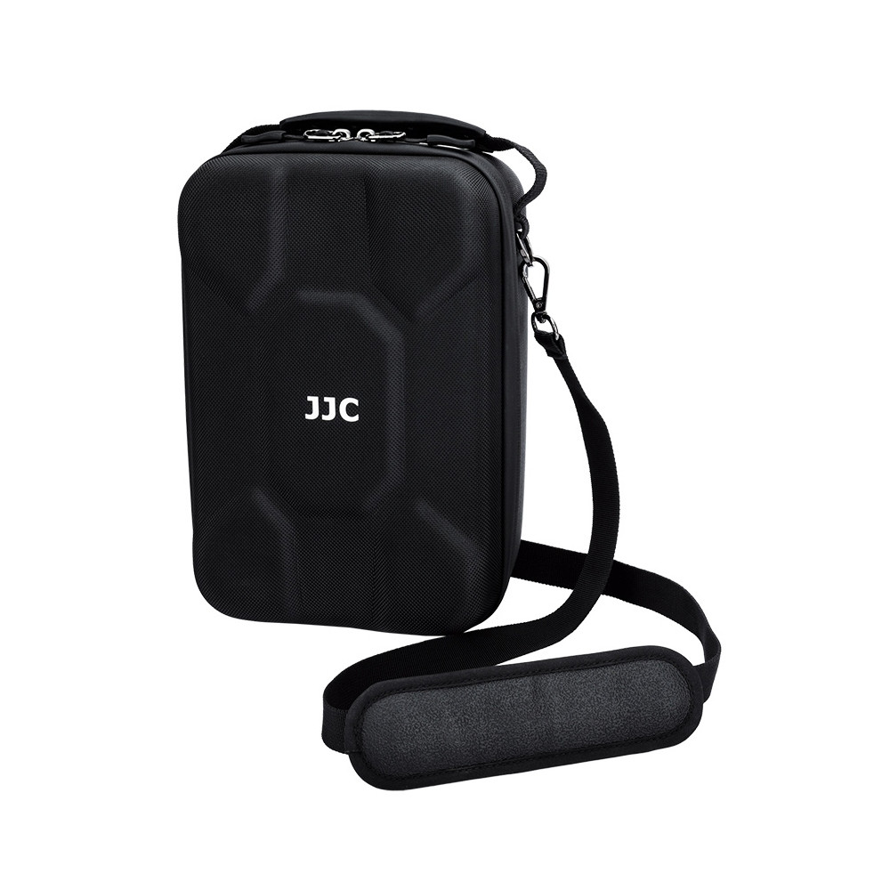 Kvalitní pevná brašna JJC pro ochranu fotoaparátu a objektivů. Vhodná také pro přenášení dronů. Vnější obal brašny je vyrobený z pevného materiálu EVA, který je velmi odolný a výborně chrání foto vybavení proti nárazům. Uvnitř pouzdra je měkká semišová podšívka. Součástí brašny jsou také dvě odnímatelné přepážky, které je možné posouvat podle potřeby. K dispozici je síťovaná kapsa na zip například na paměťové karty. Dodáváno včetně popruhu přes rameno.