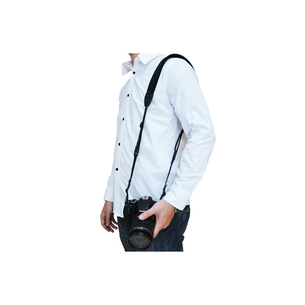 JJC NS-CBK - neoprenový popruh na krk nebo přes rameno pro pohodlné nošení fotoaparátu. Popruh se na fotoaparát připevňuje do poutek pro popruhy. Šířka řemínku pro uchycení na fotoaparát je 10 mm. Popruh je možné použít na většinu zrcadlovek.