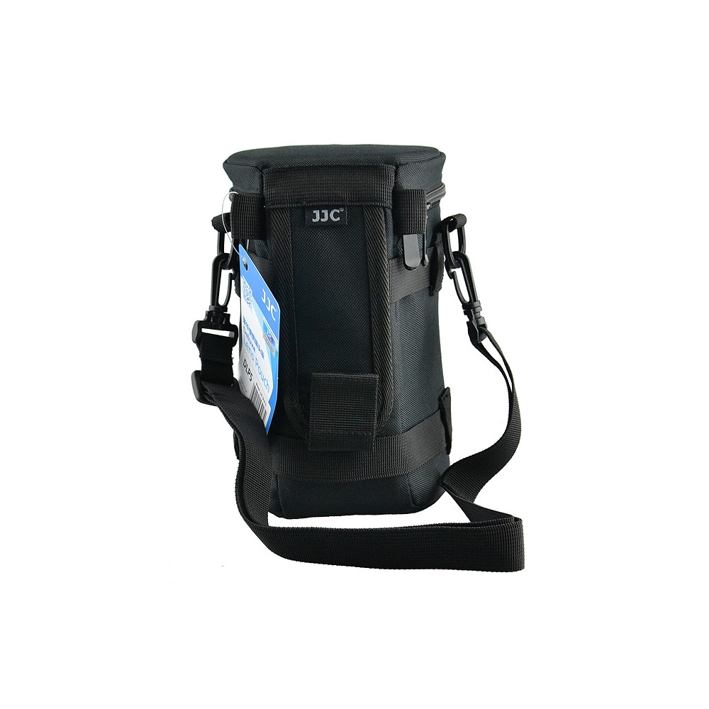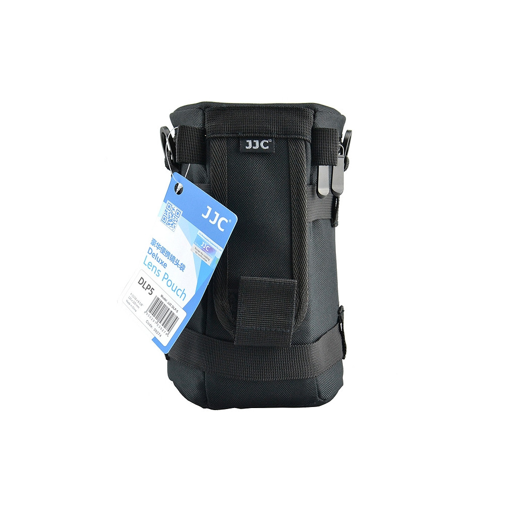 Pouzdro od firmy JJC je vyrobeno ze zátěžového nylonu a vnitřní část je opatřena měkkým polstrováním, které zajišťuje perfektní ochranu a tlumení nárazů při přepravě objektivu. Pouzdro může být přichyceno na opasek nebo pomocí dvou poutek například na ramenní popruh. Uvnitř pouzdra naleznete také malou přihrádku na krytku a další menší příslušenství. Vnější materiál je voděodolný a zajišťuje tak lepší ochranu objektivu před vlhkostí.