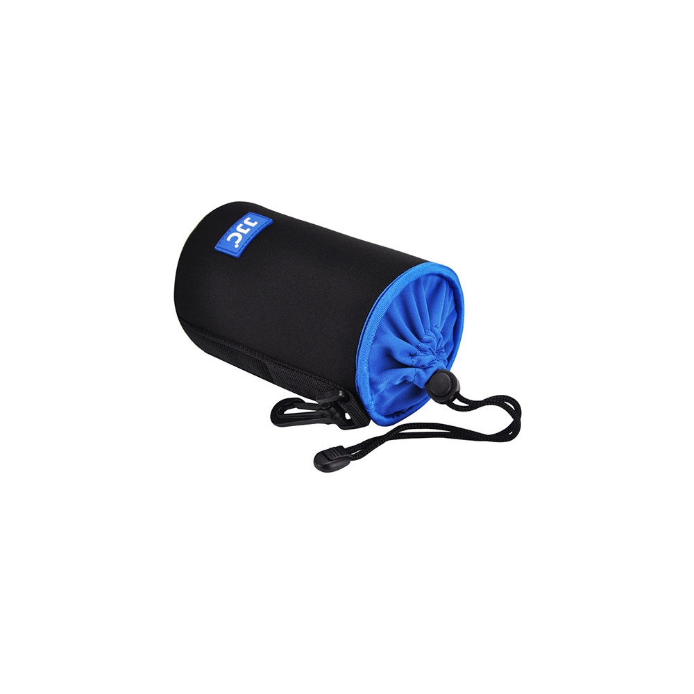 Pouzdro od firmy JJC je vyrobeno z odolného a měkkého neoprenu. Zajišťuje ochranu a tlumení nárazů při přenášení objektivu. Pouzdro je vybaveno karabinou a smyčkou, kterou může být přichyceno například na opasek.