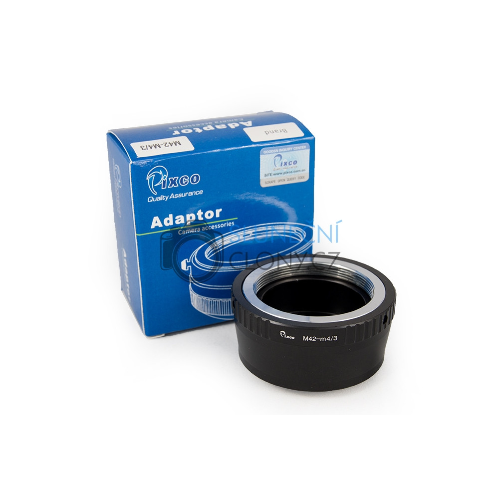 Kvalitní kovová redukce od firmy Pixco pro fotoaparáty s bajonetem Micro 4/3 pro připojení starších objektivů se závitem M42. Umožňuje ostření na nekonečno!