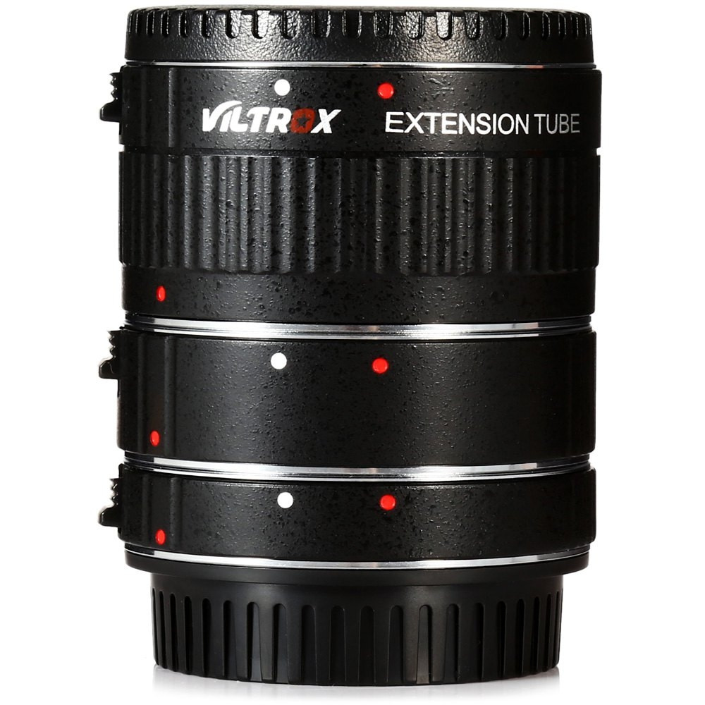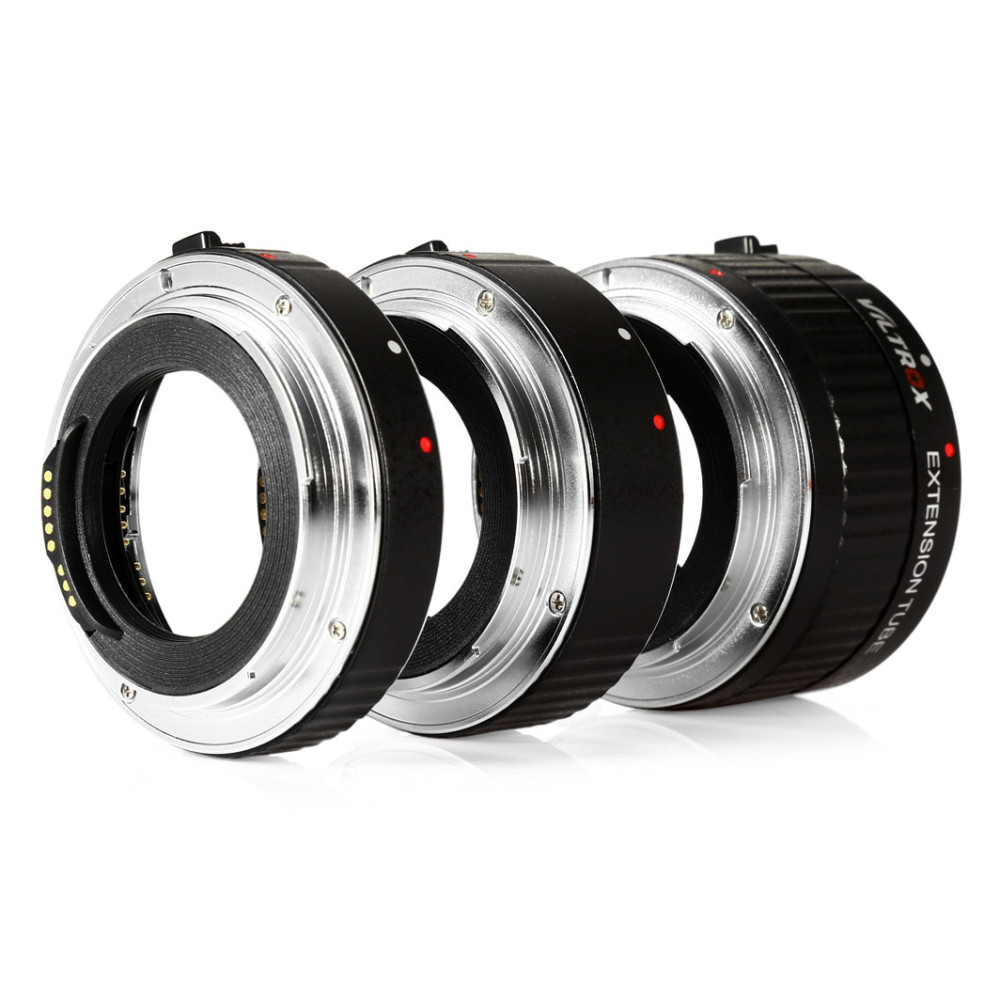 Sada tří makro mezikroužků od firmy Viltrox pro objektivy s bajonetem Canon EOS EF/EF-s. Rozměry mezikroužků jsou 12, 20 a 36 mm a obsahují elektrické kontakty pro přenos všech informací mezi objektivem a tělem fotoaparátu.