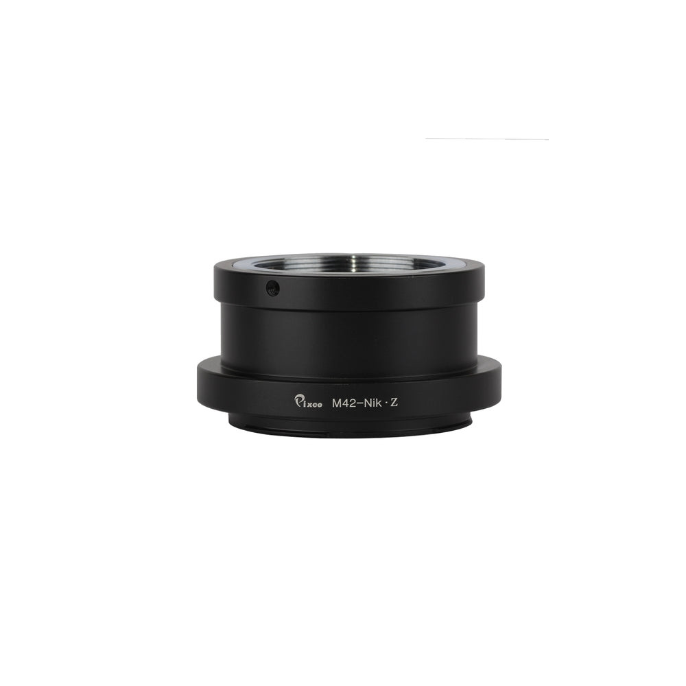 Kvalitní kovová redukce od firmy Pixco pro fotoaparáty s bajonetem Nikon Z pro připojení starších objektivů se závitem M42. Redukce je na konci závitu vybavena lemem, který na objektivu zatlačuje kolíček pro ovládání clony.