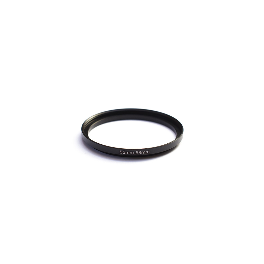 Kvalitní kovový redukční kroužek pro použití filtru s průměrem 58 mm na objektivu se závitem 55 mm.