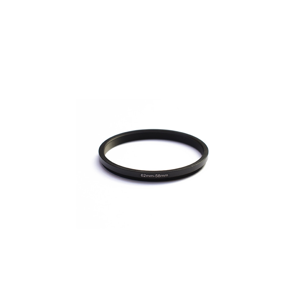 Kvalitní kovový redukční kroužek pro použití filtru s průměrem 58 mm na objektivu se závitem 62 mm.