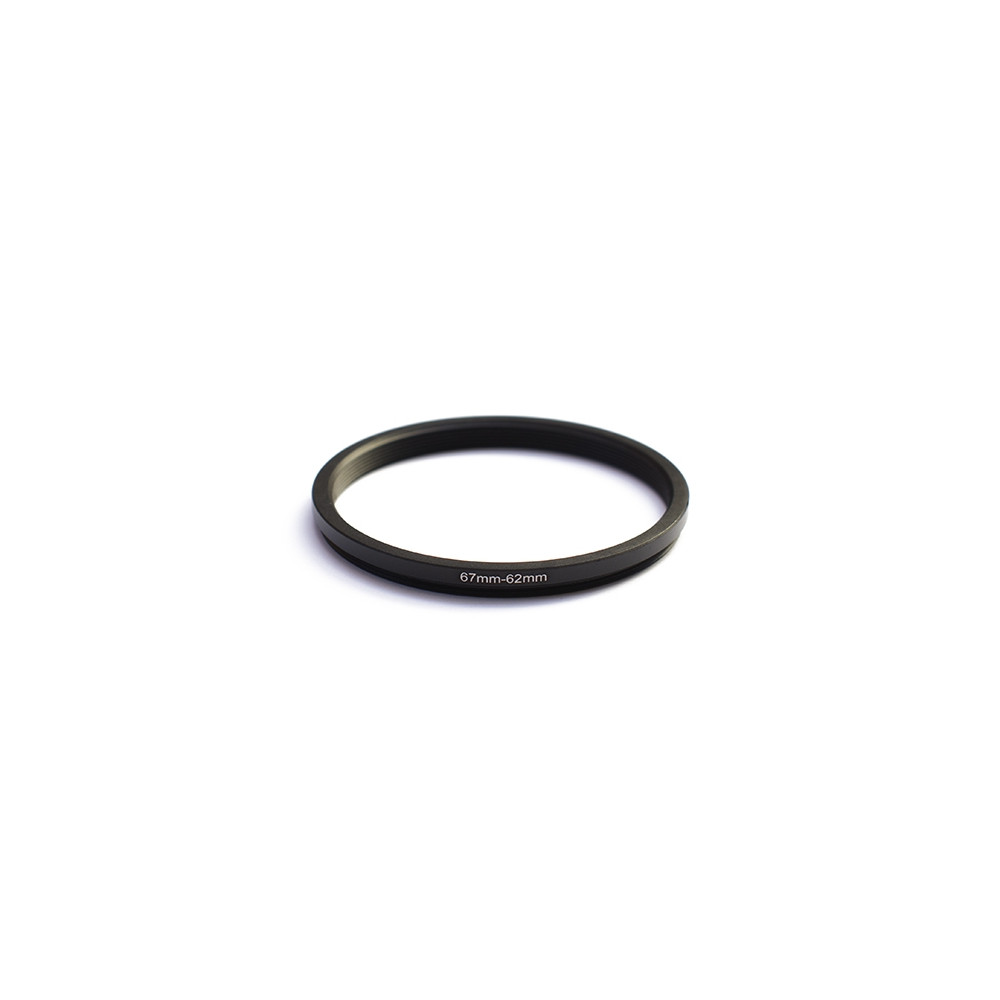 Kvalitní kovový redukční kroužek pro použití filtru s průměrem 62 mm na objektivu se závitem 67 mm.