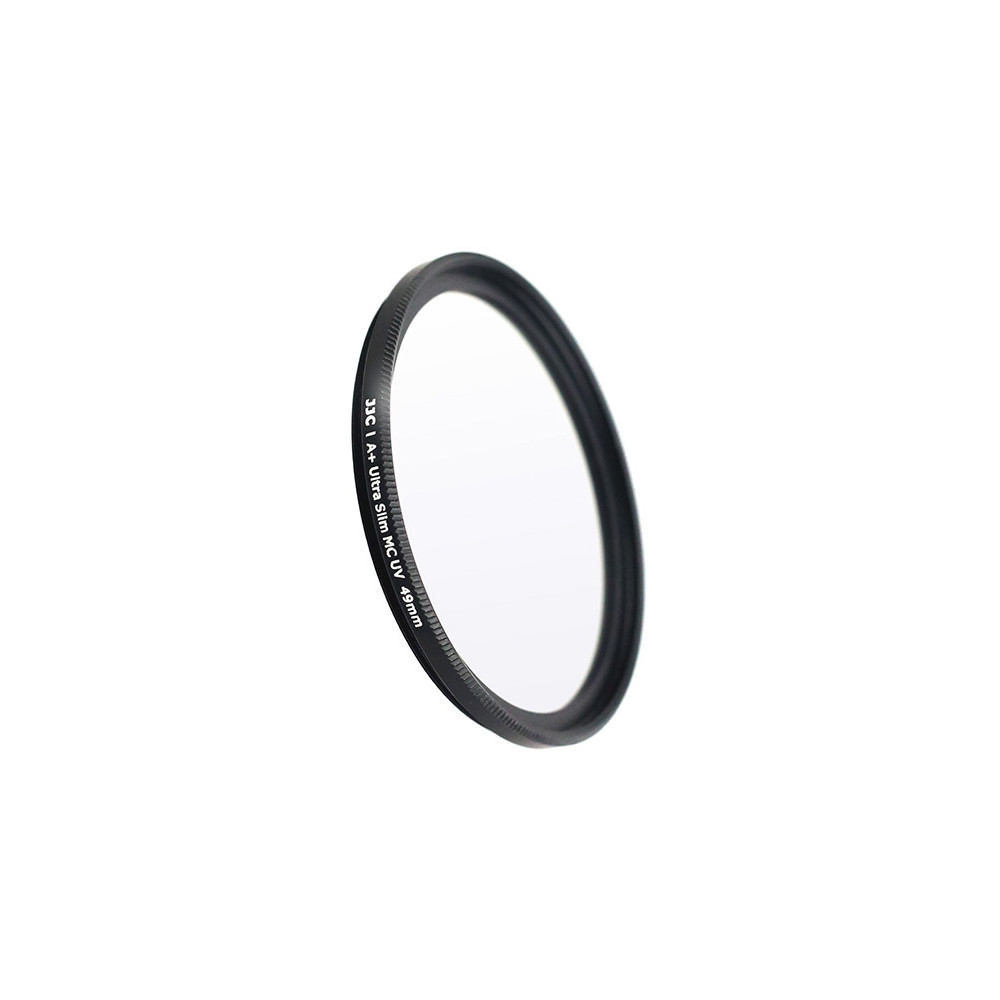Filtr JJC A+ Ultra Slim MC UV 49 mm zabraňuje průniku ultrafialového záření a dalším důvodem pro jeho použití je ochrana přední čočky objektivu před poškozením a nečistotami. Výhodou je, že UV filtry jsou velmi čiré, tudíž nijak neovlivňují kvalitu pořízených fotografií. Konkrétně tento filtr má propustnost světla minimálně 99,5 %. Vyrobené jsou z kvalitního japonského optického skla. Filtr je navíc opatřen 12 antireflexními vrstvami (6 vrstev z každé strany), které snižují odraz světla od jeho povrchu. Díky tomu dochází k menším světelným ztrátám a více světla se dostane skrz objektiv. Antireflexní vrstvy mají také příznivý vliv na kontrast a ostrost pořízených fotografií.