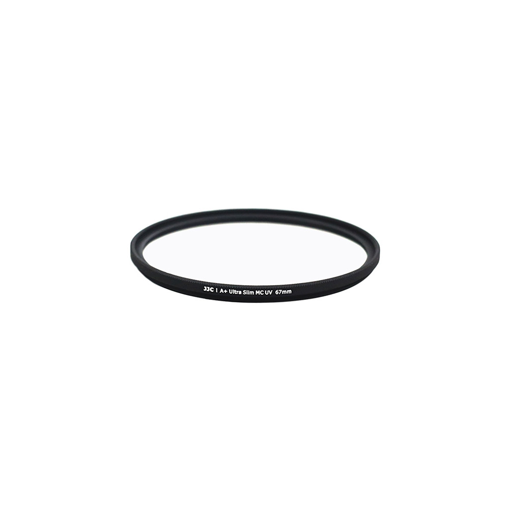 Filtr JJC A+ Ultra Slim MC UV 67 mm zabraňuje průniku ultrafialového záření a dalším důvodem pro jeho použití je ochrana přední čočky objektivu před poškozením a nečistotami. Výhodou je, že UV filtry jsou velmi čiré, tudíž nijak neovlivňují kvalitu pořízených fotografií. Konkrétně tento filtr má propustnost světla minimálně 99,5 %. Vyrobené jsou z kvalitního japonského optického skla. Filtr je navíc opatřen 12 antireflexními vrstvami (6 vrstev z každé strany), které snižují odraz světla od jeho povrchu. Díky tomu dochází k menším světelným ztrátám a více světla se dostane skrz objektiv. Antireflexní vrstvy mají také příznivý vliv na kontrast a ostrost pořízených fotografií.