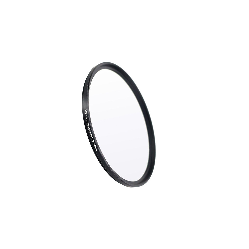 Filtr JJC A+ Ultra Slim MC UV 72 mm zabraňuje průniku ultrafialového záření a dalším důvodem pro jeho použití je ochrana přední čočky objektivu před poškozením a nečistotami. Výhodou je, že UV filtry jsou velmi čiré, tudíž nijak neovlivňují kvalitu pořízených fotografií. Konkrétně tento filtr má propustnost světla minimálně 99,5 %. Vyrobené jsou z kvalitního japonského optického skla. Filtr je navíc opatřen 12 antireflexními vrstvami (6 vrstev z každé strany), které snižují odraz světla od jeho povrchu. Díky tomu dochází k menším světelným ztrátám a více světla se dostane skrz objektiv. Antireflexní vrstvy mají také příznivý vliv na kontrast a ostrost pořízených fotografií.