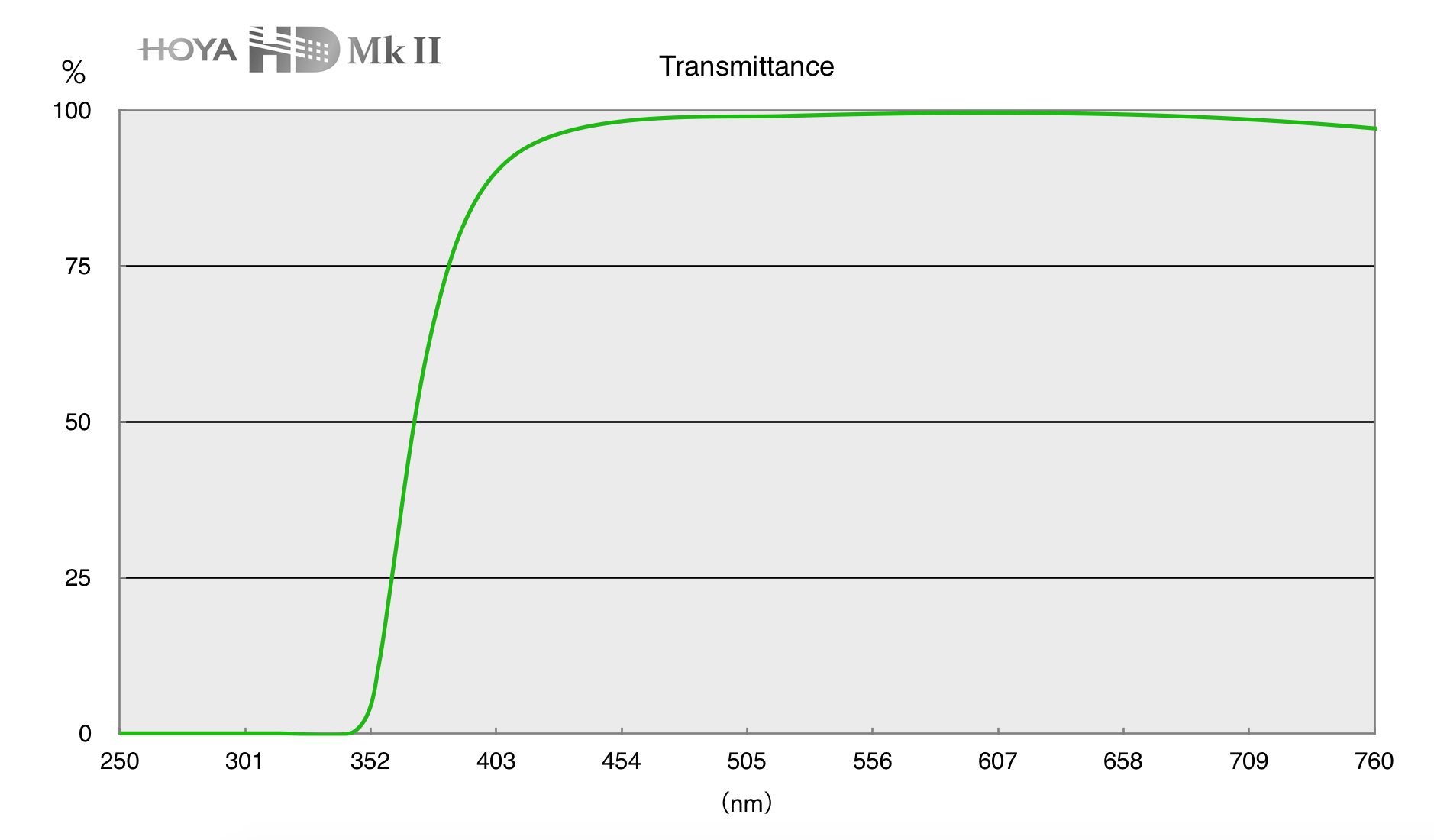 - Průměrná propustnost světla 98,8 % v rozmezí vlnových délek 400 až 700 nm (viditelné světlo)